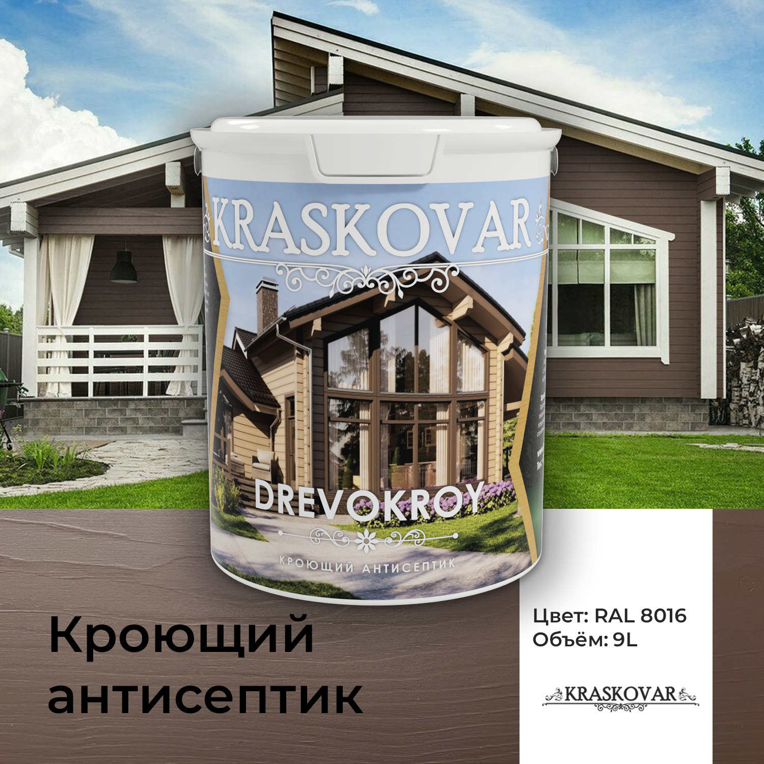 Антисептик кроющий Kraskovar Drevokroy RAL 8025 9л