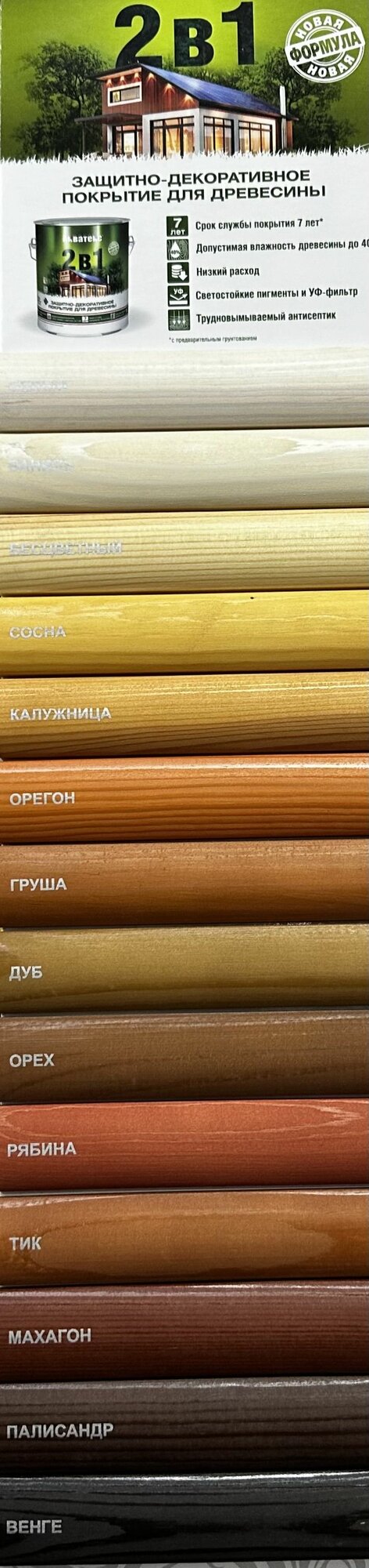 | Отзыв: | Брали орех для пропитки дома снаружи и белую - внутри. Пока использовали только орех. Боялись, что в два слоя будет темным, но получилось что надо. На солнце и в тени цвет смотрится по-разному. Распыляли краскопультом и старым пылесосом - пылесосом получается удобнее и быстрее. Сохнет достаточно быстро, между слоями достаточно подождать пару часов, но может прилипать местами еще какое-то время, лучше ничего не ставить/не прислонять два-три дня. |