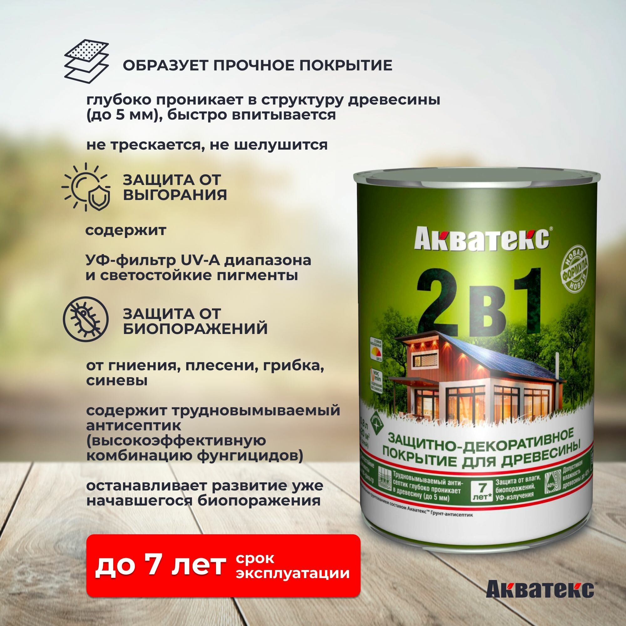 Пропитка по дереву Акватекс 2в1 защитно-декоративное покрытие для древесины Сосна 0,8л