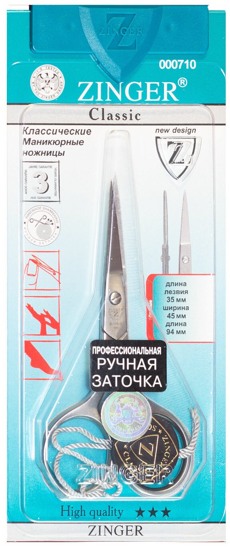 Ножницы маникюрные, прямые, с ручной заточкой Zinger