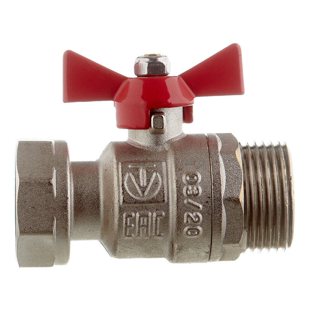 Купить Кран шаровой латунный Valtec 1 ВР(г) проходной бабочка с накидной гайкой прямой (VT.260.N.0606)