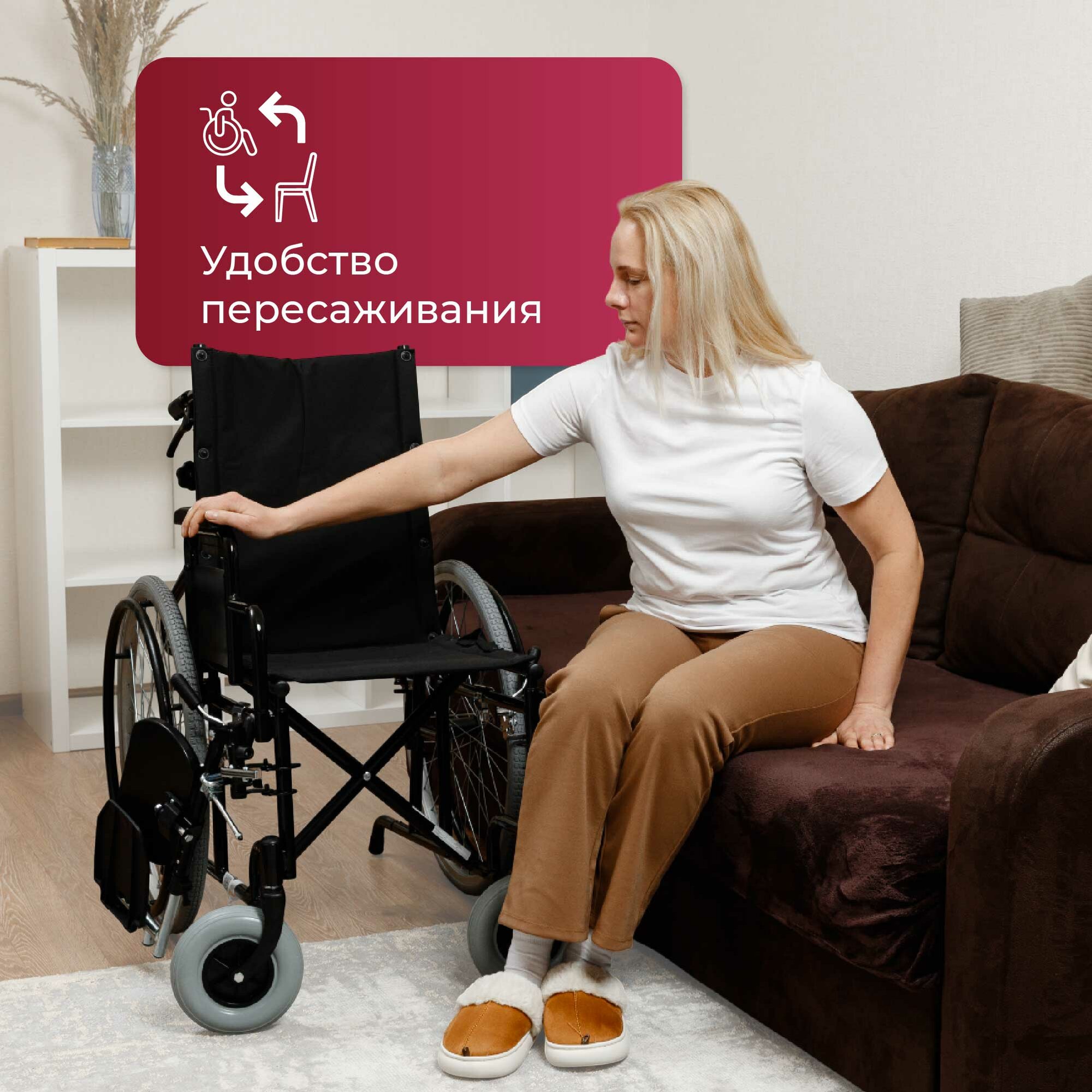 | Плюсы: | Простая, не тяжелая. Обычная коляска. Удобная для больницы или дома, когда устаёшь передвигаться на костылях |