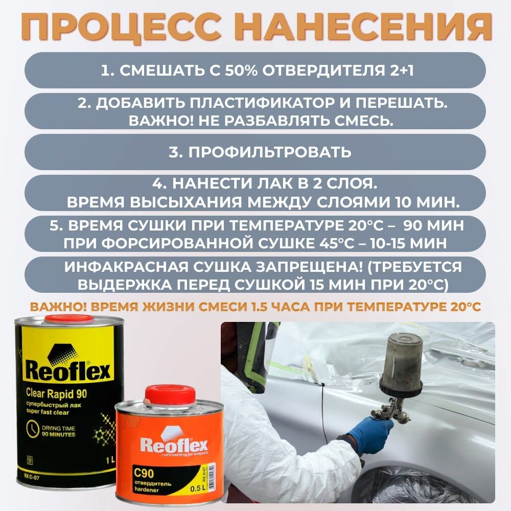 Ниже Вы можете прочитать отзывы на Супер-быстрый лак против царапин Reoflex Clear Rapid 90 Super Fast 1 л.+ с отв. 0,5 л., ознакомится с подробными характеристиками, посмотреть интересные обзоры и фотографии на Супер-быстрый лак против царапин Reoflex Clear Rapid 90 Super Fast 1 л.+ с отв. 0,5 л..