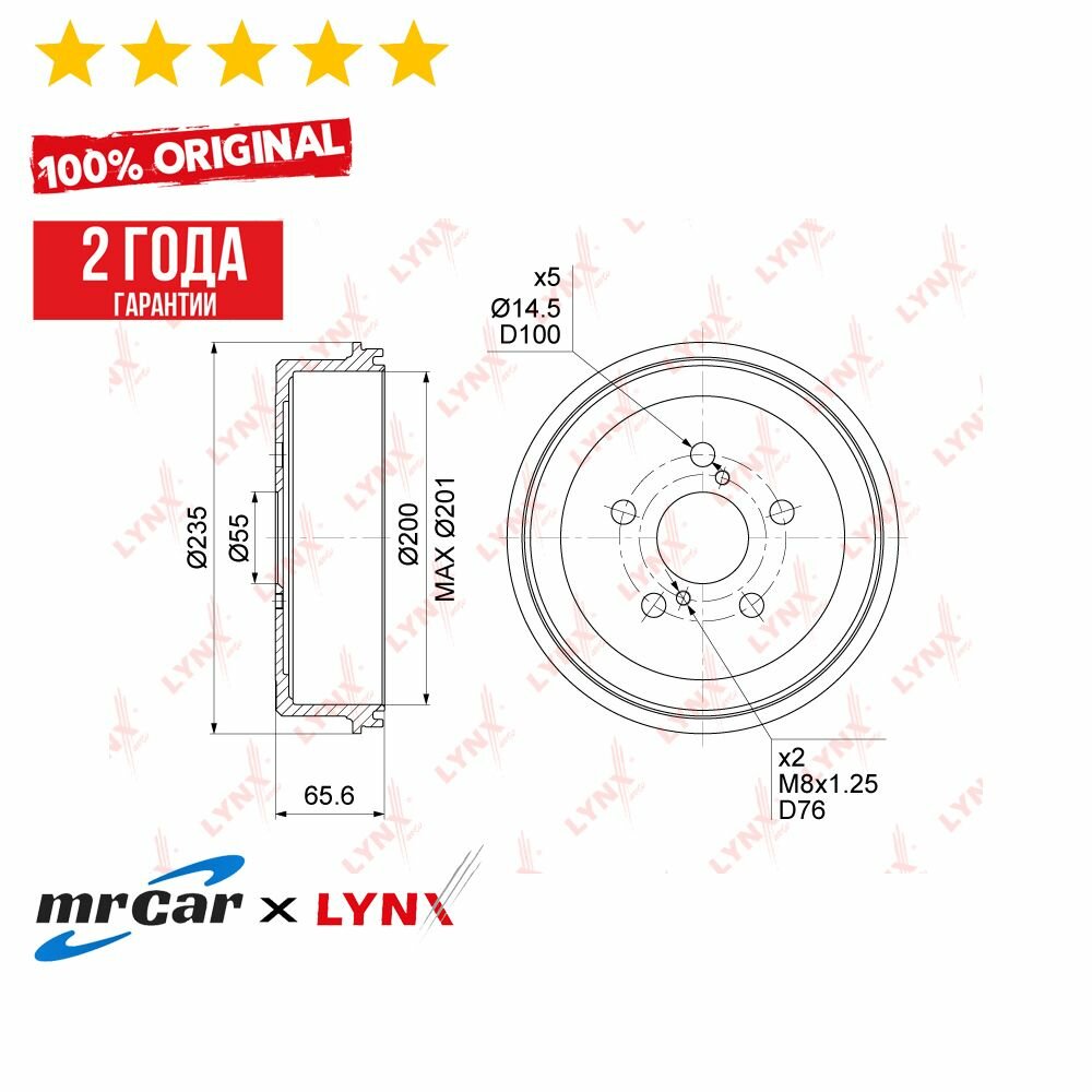 Барабан тормозной [200x55] 5 отв. BM1001 LYNX AUTO