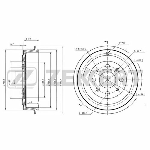 Барабан тормозной ZEKKERT BS5561 для Fiat GRANDE PUNTO 199, Punto; Opel Adam, Corsa