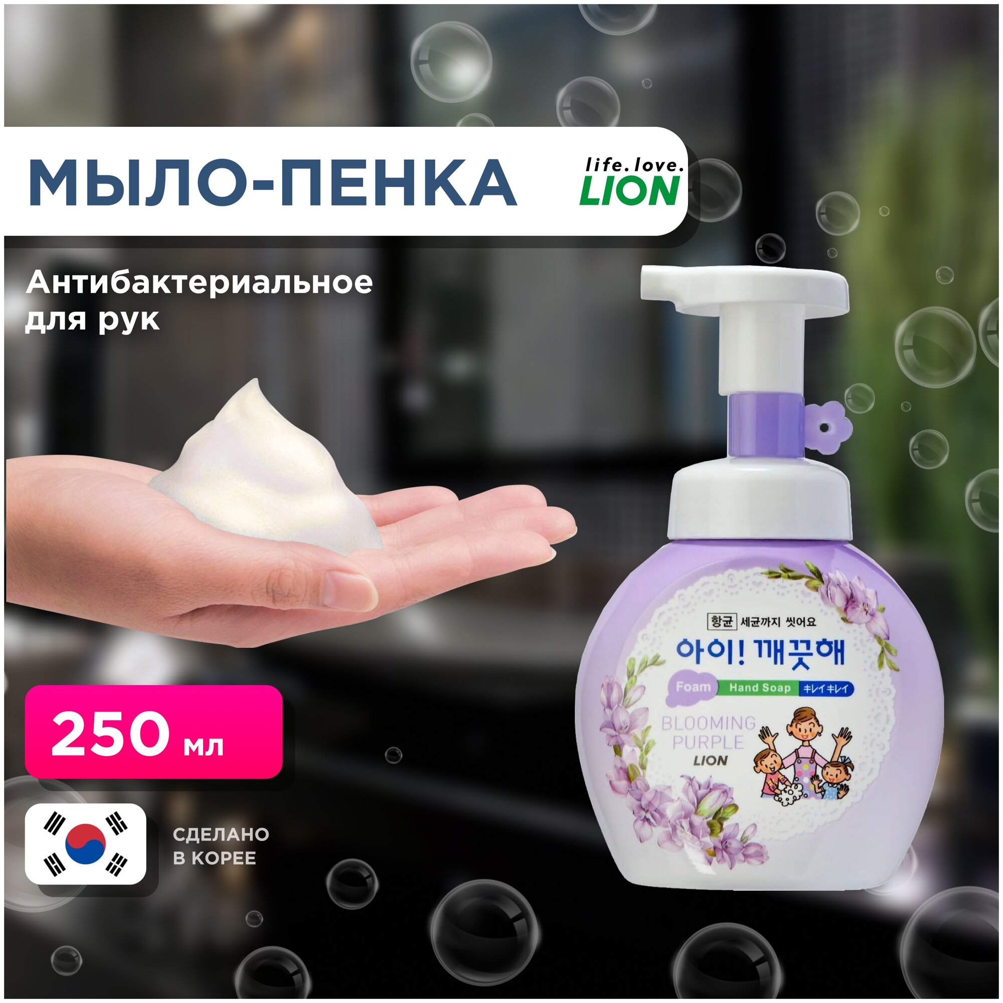 LION Ai kekute Foam handsoap blooming purple - Лион Жидкое пенное мыло для рук с ароматом фиалки, 250 мл -