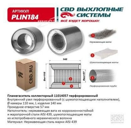 PLIN184 CBD Пламегаситель коллекторный 11014057 перфорированный, из Нерж.стали. CBD. PLIN184