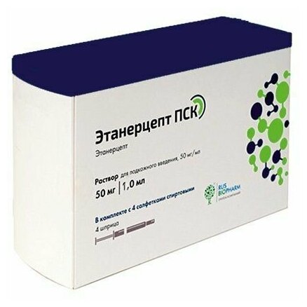 Этанерцепт ПСК раствор для подкожного введения 50 мг/мл, ампулы 1 мл, 4 шт. интересное: