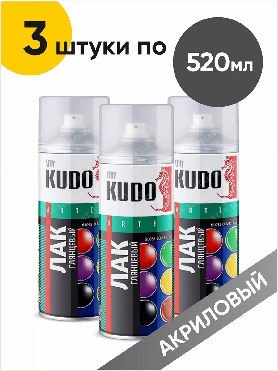Лак спрей универсальный акриловый глянцевый, 520 мл. kudo ku-9002