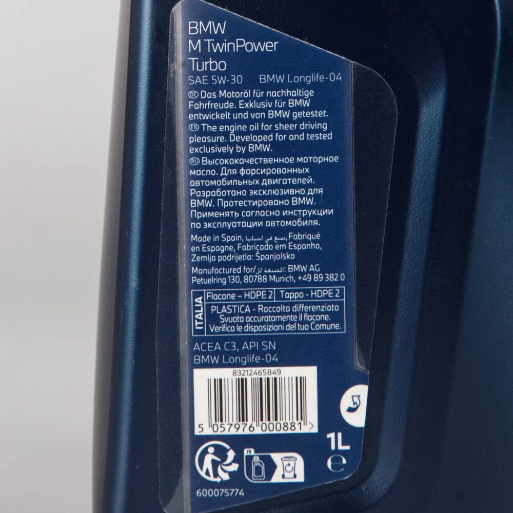 BMW 83212465849 Масло моторное синтетическое TWIN POWER TURBO 5W30 API SN, ACEA C3 1л 1шт
