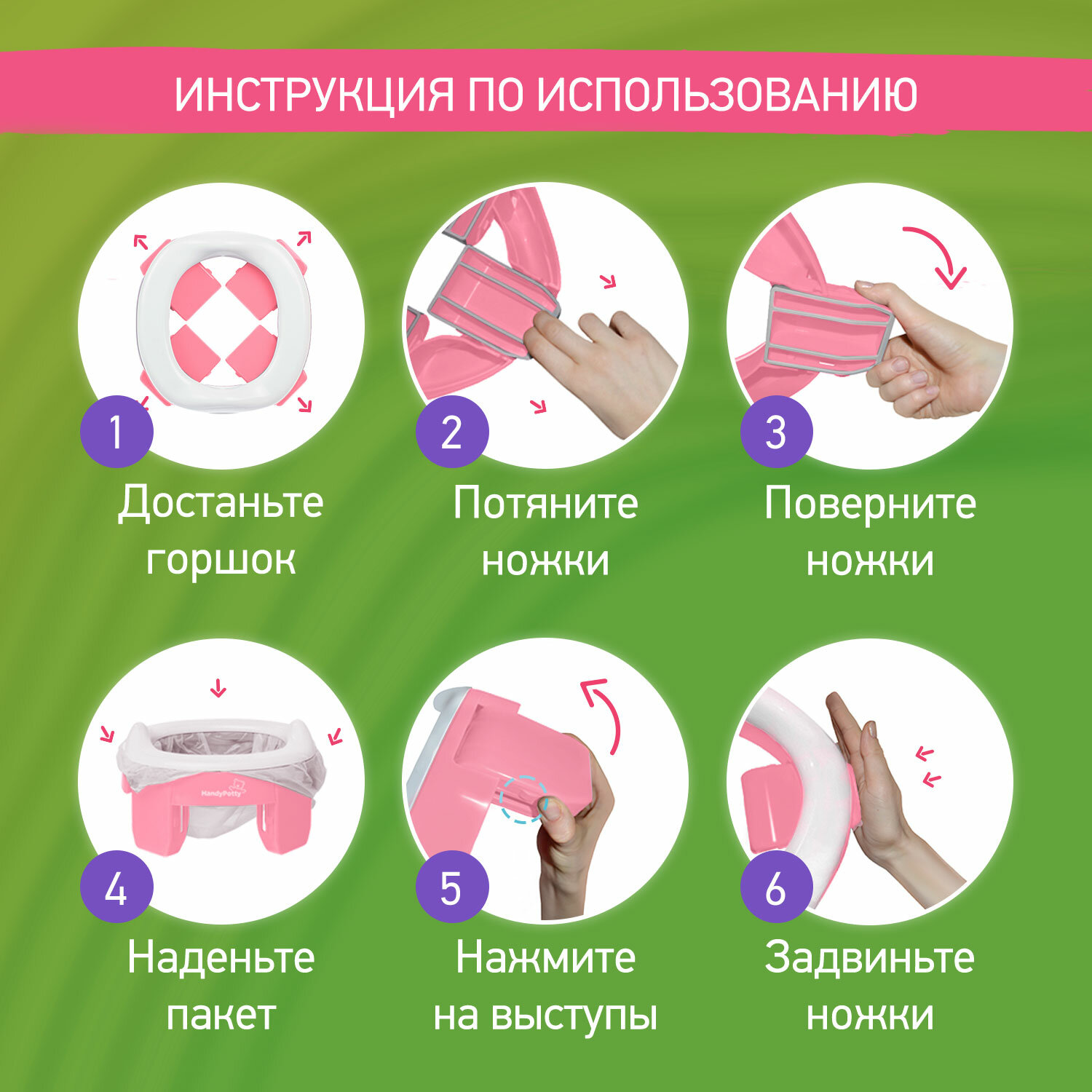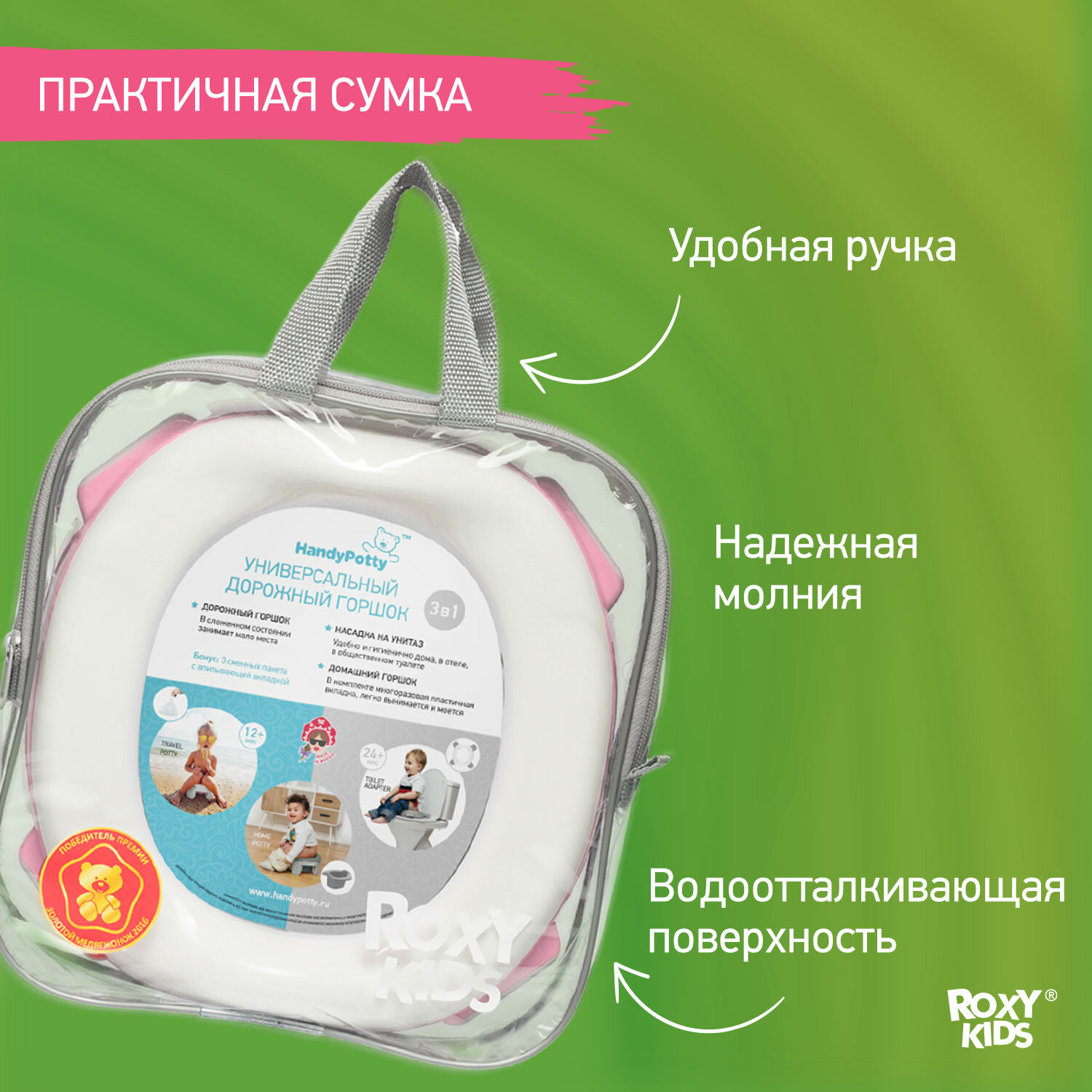 Горшок дорожный складной с многоразовой вкладкой HandyPotty 3 в 1 от ROXY-KIDS, цвет розовый