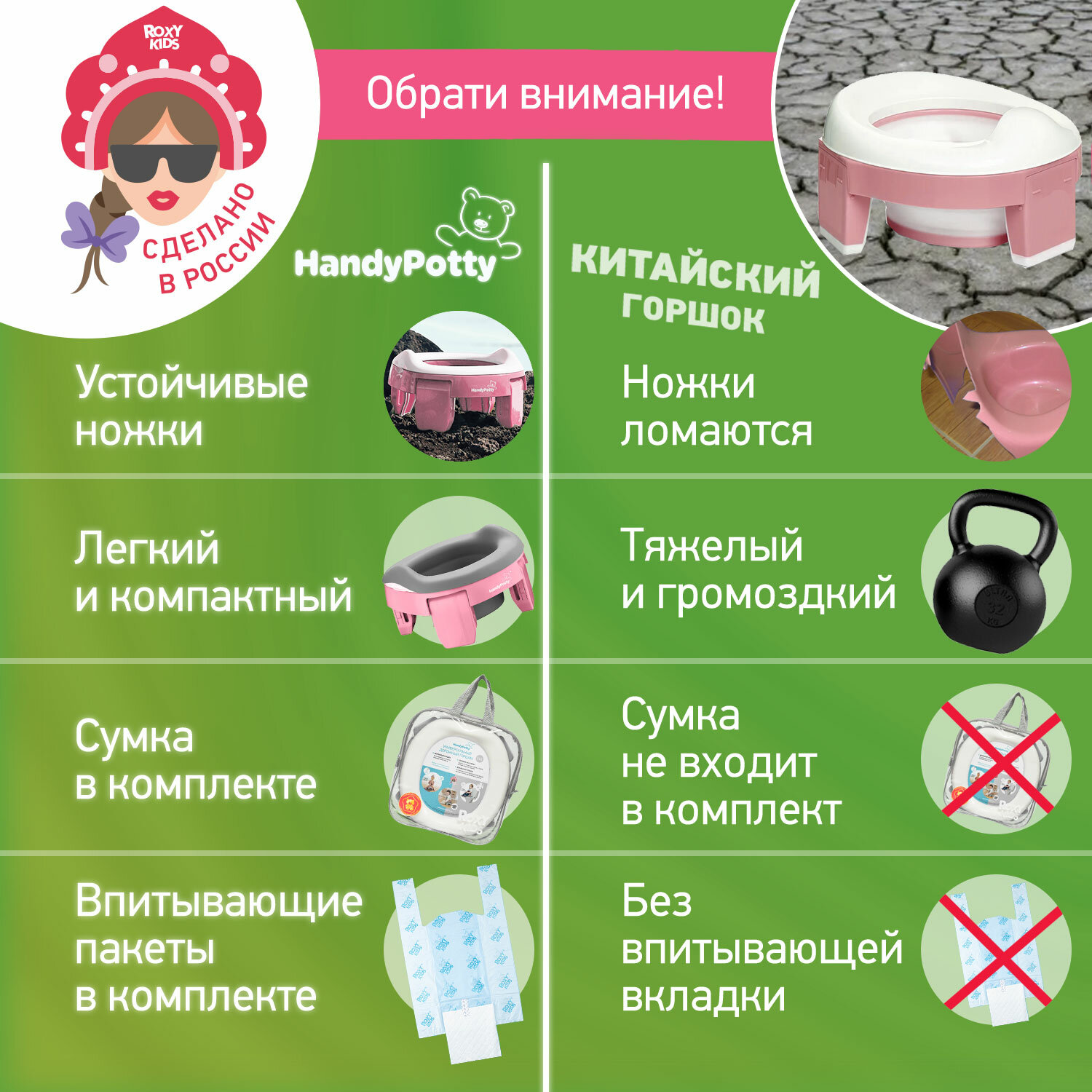 СохранитьГоршок детский складной дорожный 3в1 для малышей HandyPotty ROXY-KIDS интересное: