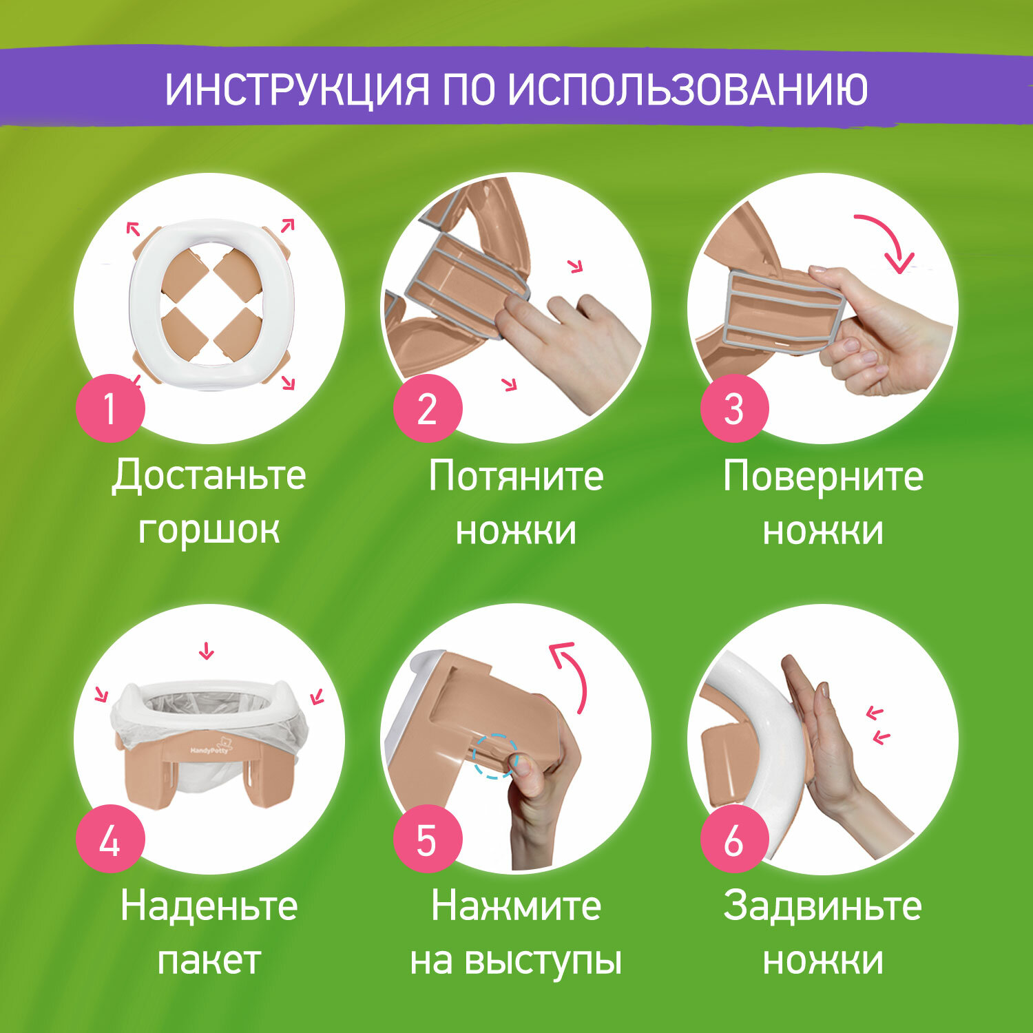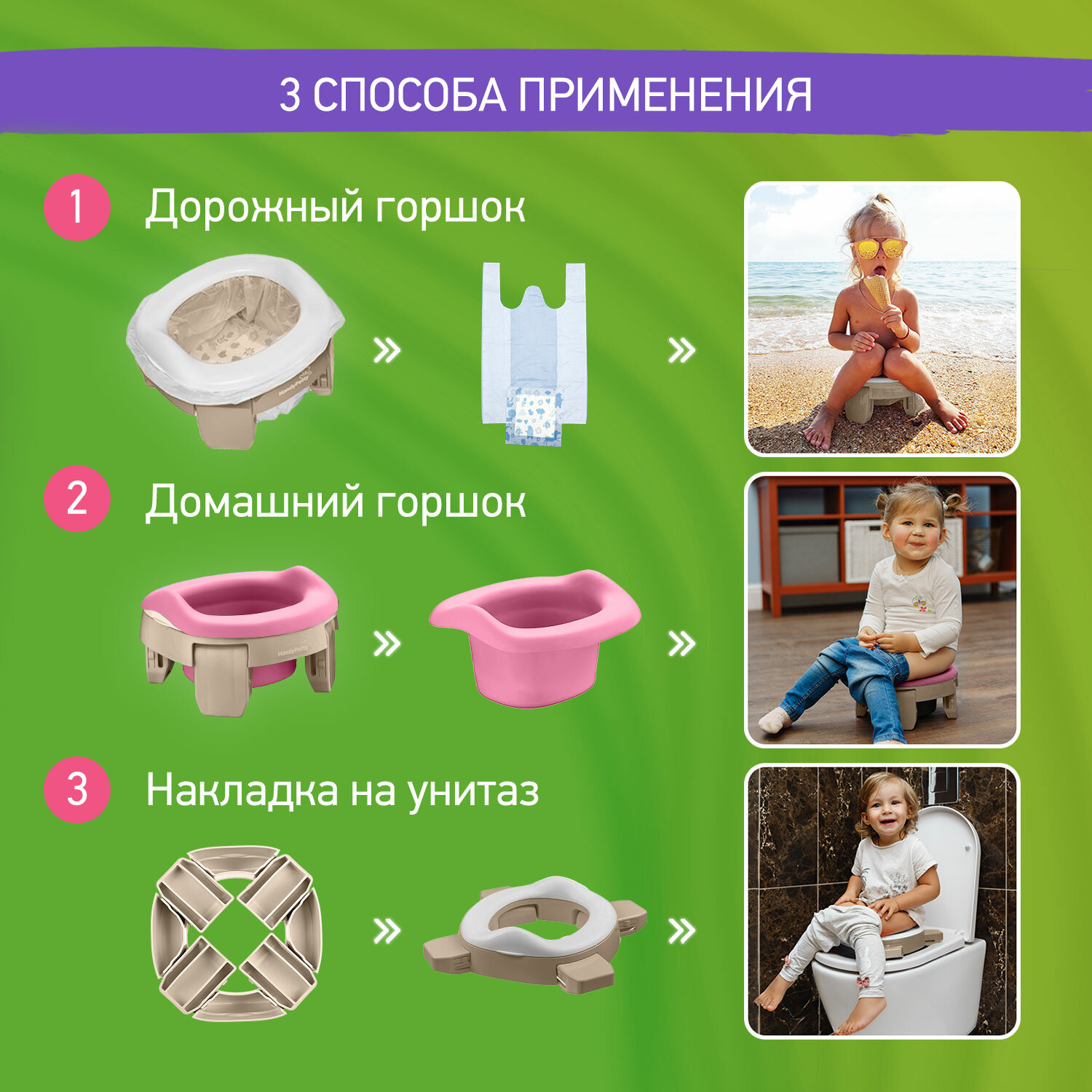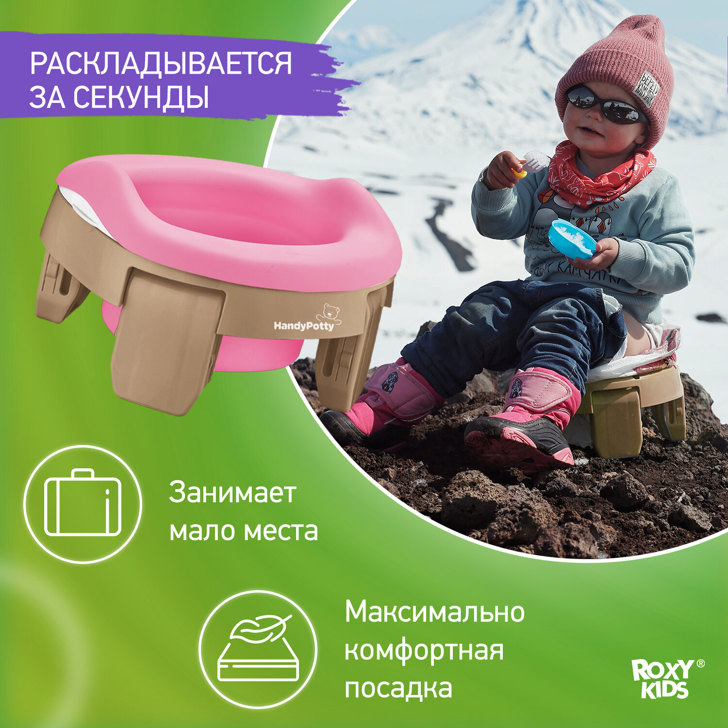 Купить Складной дорожный горшок 3в1 HandyPotty от ROXY KIDS, цвет бежевый/розовый