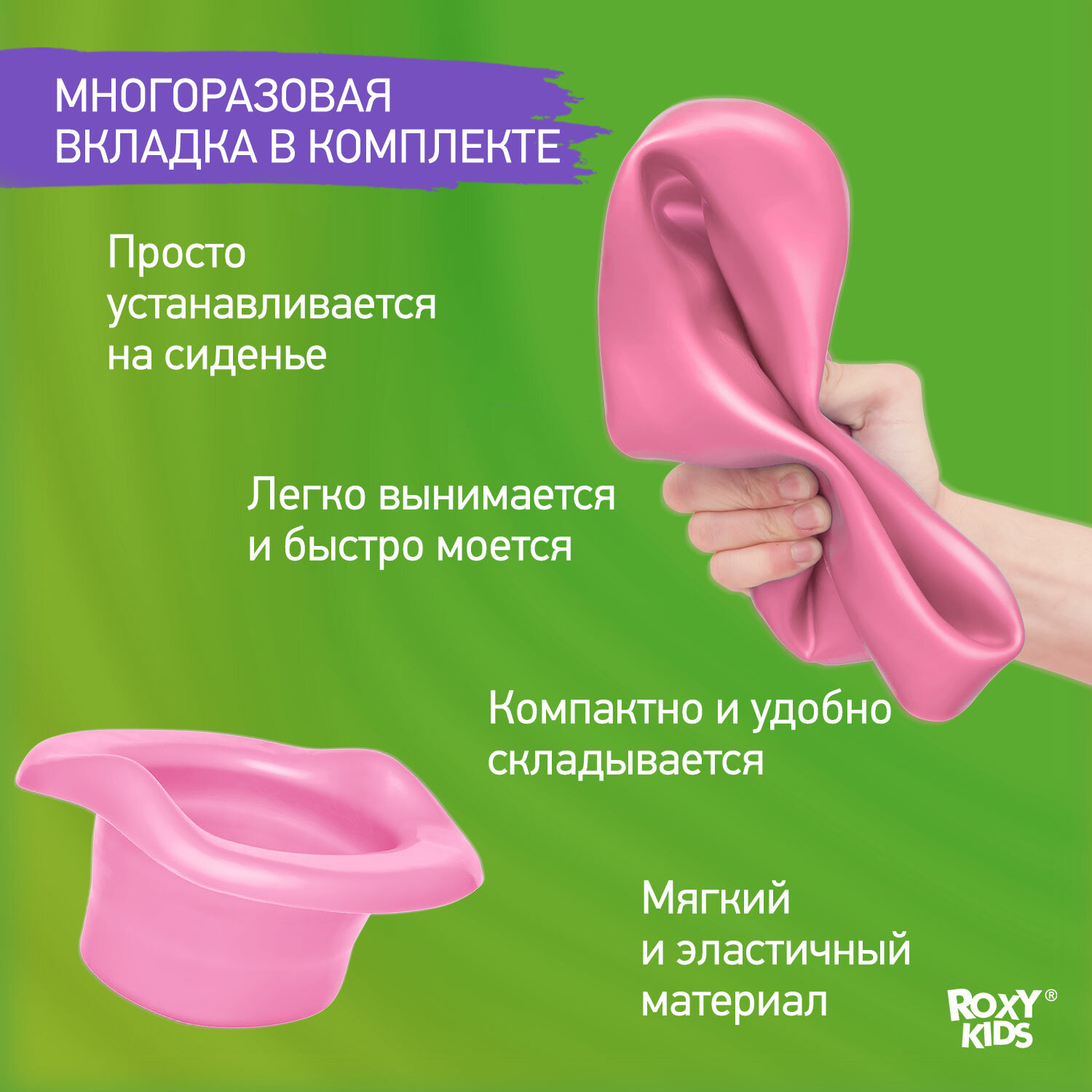 Горшок дорожный складной с многоразовой вкладкой HandyPotty 3 в 1 от ROXY-KIDS, цвет розовый