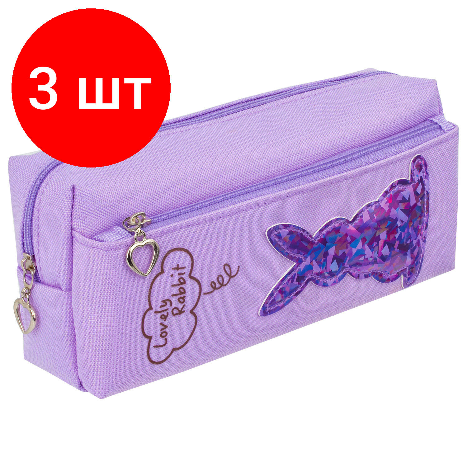 Купить Комплект 3 шт, Пенал-косметичка юнландия, 2 отделения, мягкий, "Зайка", фиолетовый, 20х7х9 см, 228989