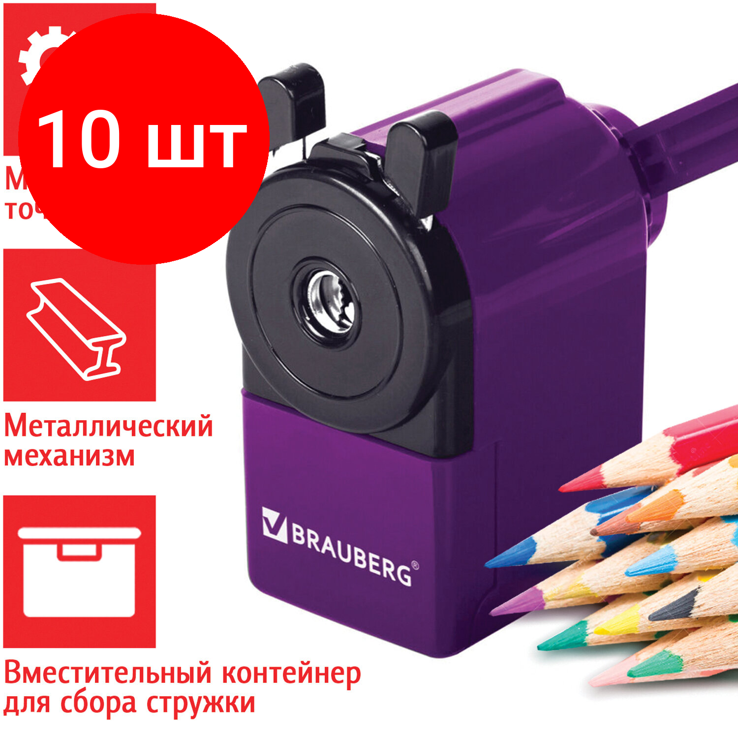 СохранитьКомплект 10 шт, Точилка механическая BRAUBERG "JET", металлический механизм, корпус фиолетовый, 229569 интересное: