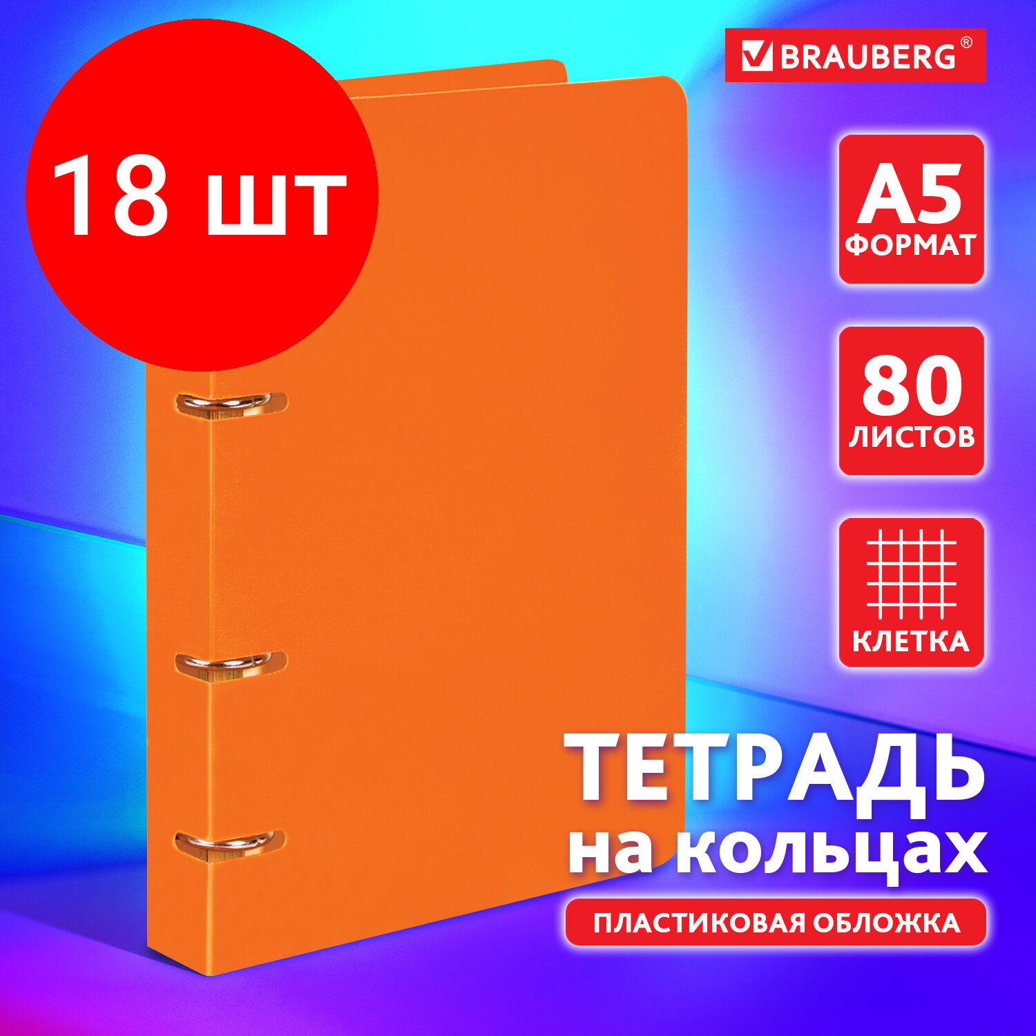 Купить Комплект 18 шт, Тетрадь на кольцах А5 (160х215 мм), 80 л., пластиковая обложка, клетка, BRAUBERG, "Оранжевый", 403253