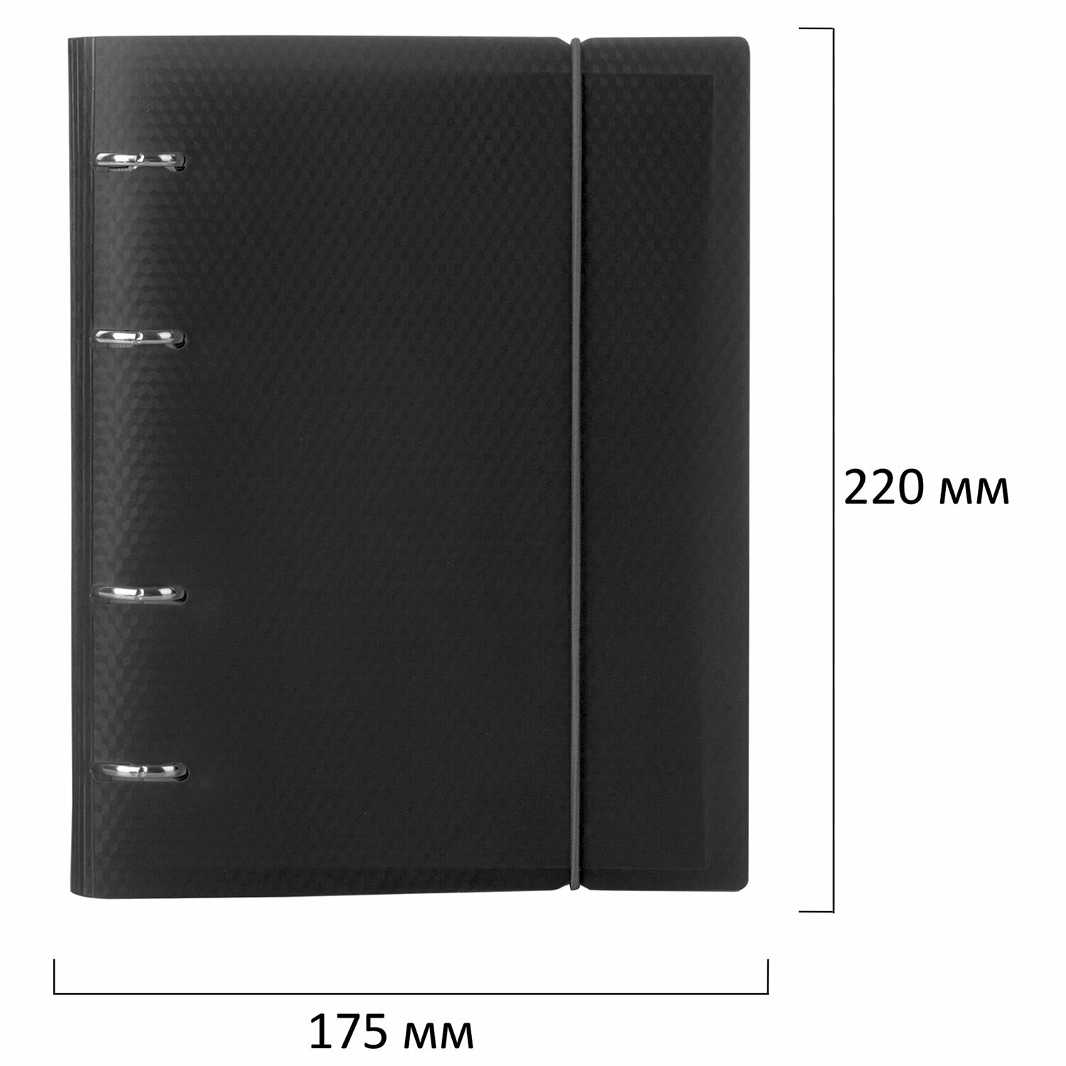 Тетрадь на кольцах BRAUBERG А5 (175х220 мм), 120 л., пластиковая обложка, клетка, с фиксирующей резинкой, черная