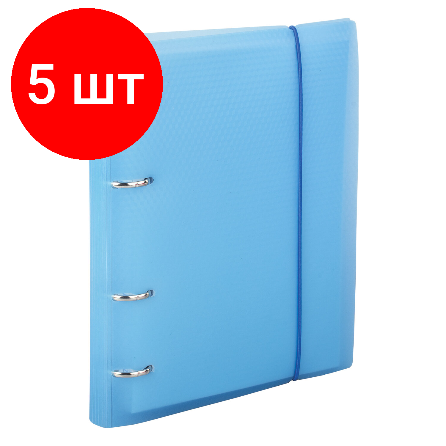 Купить Комплект 5 шт, Тетрадь на кольцах А5 (175х220 мм), 120 л., пластиковая обложка, клетка, с фиксирующей резинкой, BRAUBERG, синяя, 403567