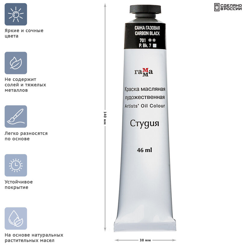 Краска Масляная Художественная гамма "Студия", 46мл. Сажа Газовая (2 шт)