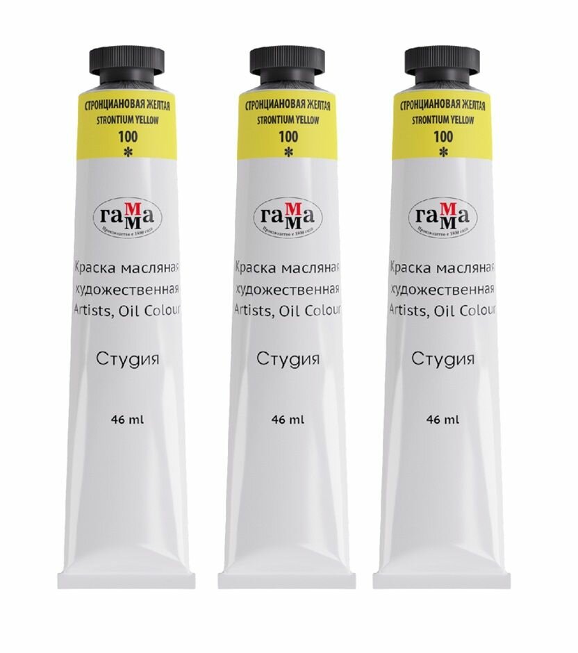 Купить 3 шт. Краска масляная художественная Гамма "Студия", 46мл, туба, стронциановая желтая