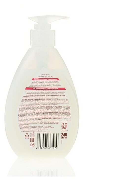 Крем-мыло Бархатные Ручки SOS интенсивное увлажнение, жидкое 240мл 4600702061079 интересное: