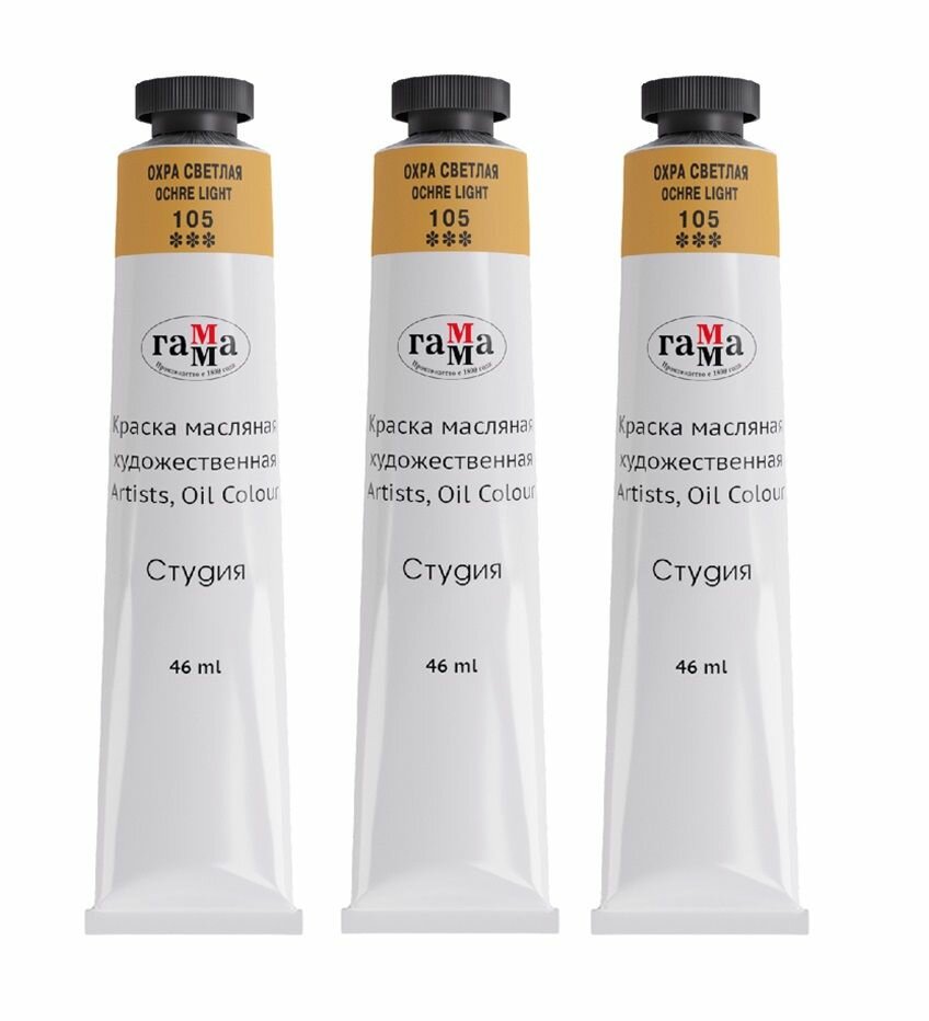 Купить Краска масляная художественная 3 шт по 46 мл охра светлая Гамма "Студия", 1 упаковка