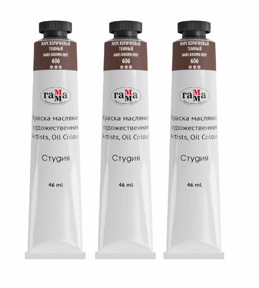 Купить 3 шт. Краска масляная художественная Гамма "Студия", 46мл, туба, марс коричневый темный
