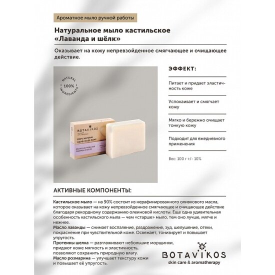 Натуральное мыло ручной работы Botavikos Лаванда и шелк, 100 г интересное: