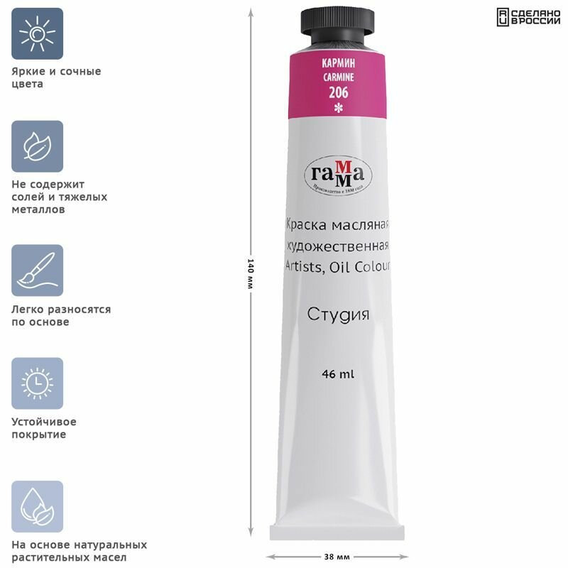 Краска масляная художественная Гамма "Студия", 46мл, туба, кармин