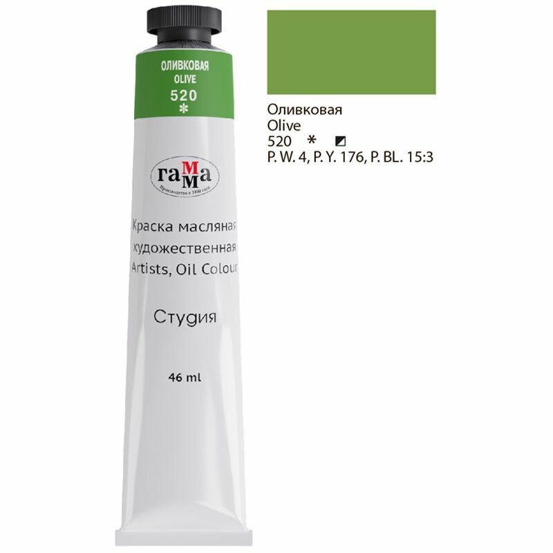 Краска масляная художественная Гамма "Студия", 46мл, туба, оливковая, 092313