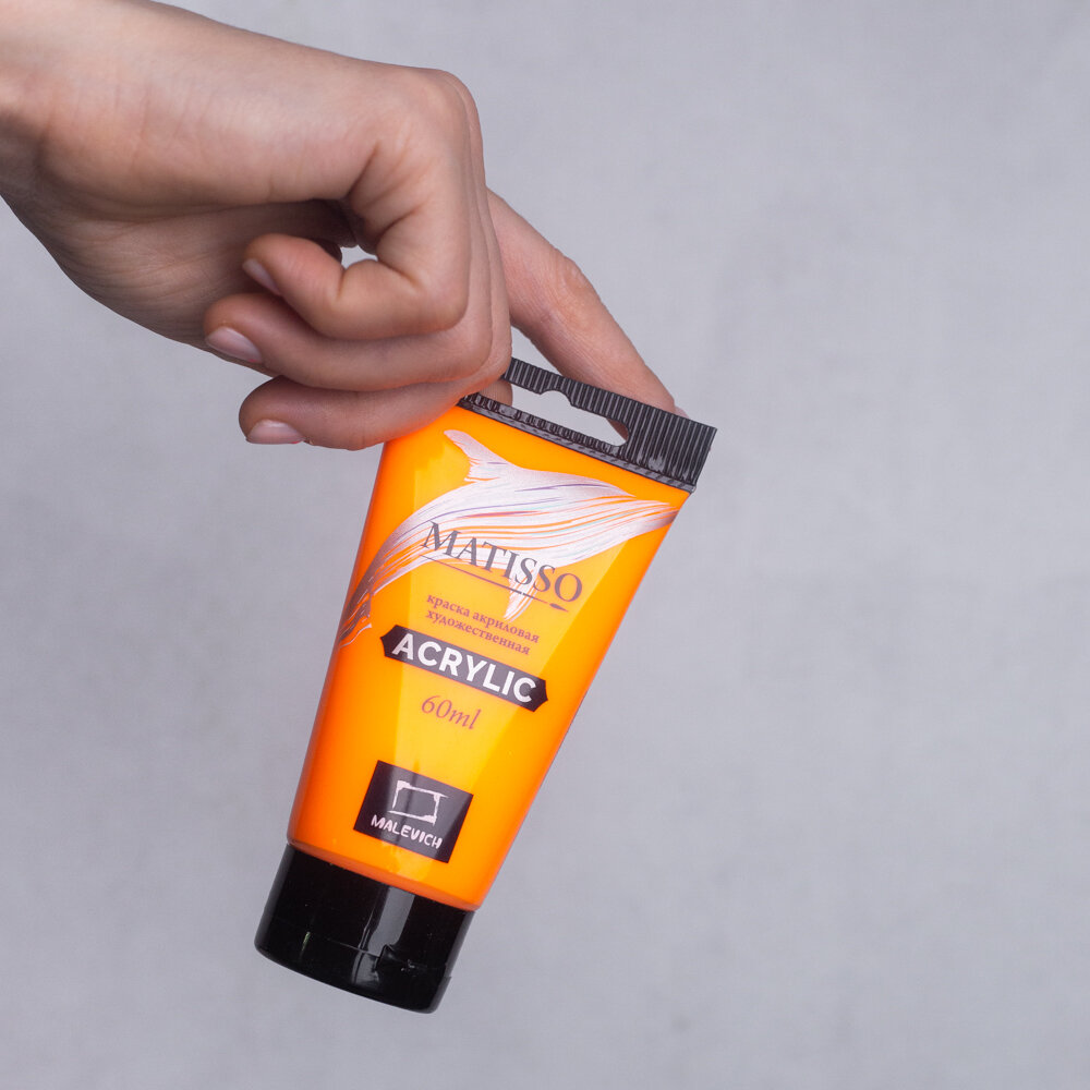Акриловая краска Малевичъ Matisso, оранжевый глянцевый акрил, 60 мл