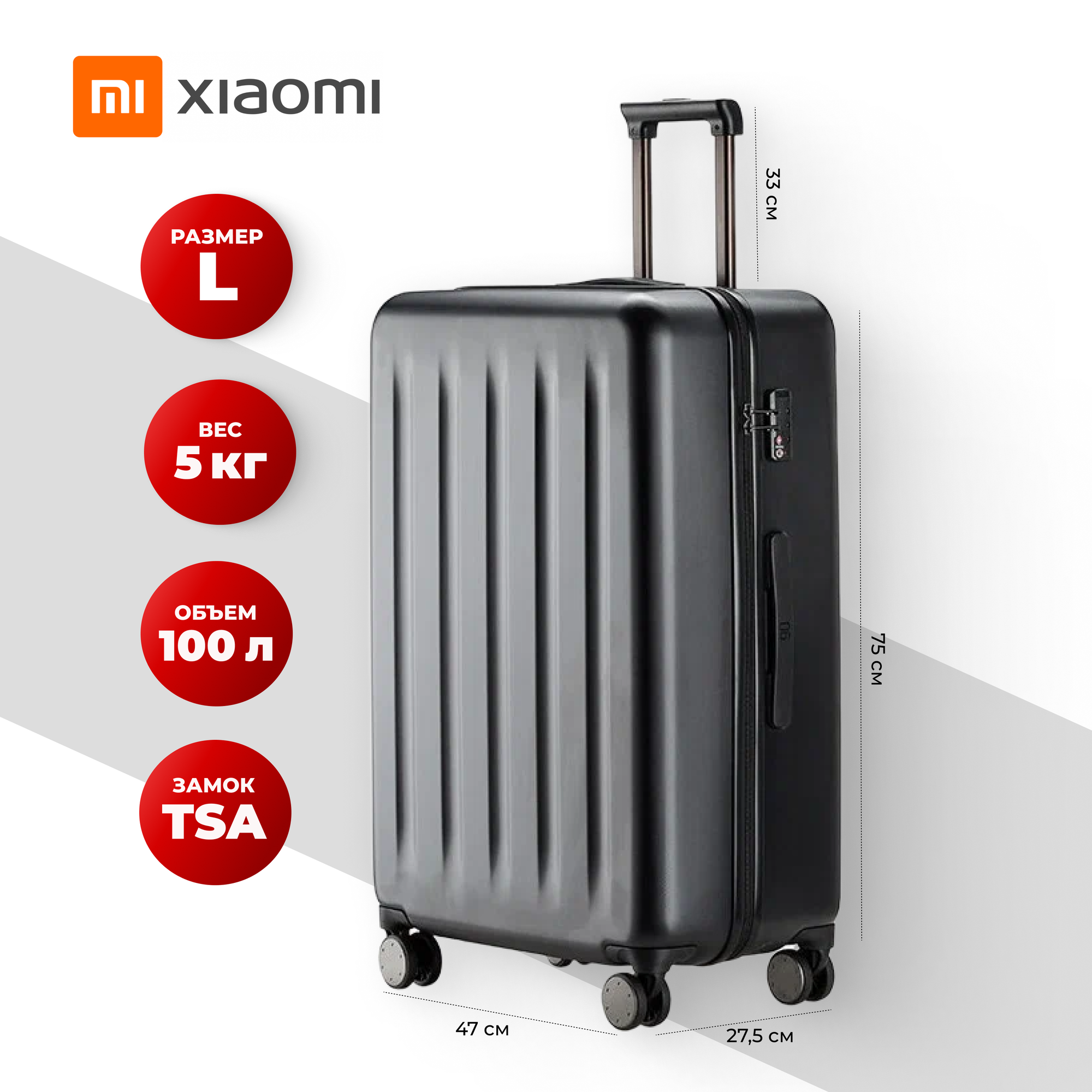 СохранитьЧемодан на колесах большой размер L Xiaomi Mi Trolley 90points 28 дюймов Gray интересное: