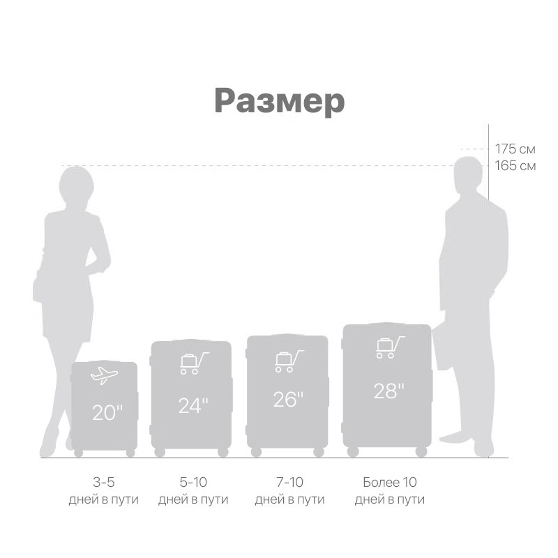 | Плюсы: | Чемодан 45х25х65 65см это высота с колёсами, но без ручки. Высота корпуса изнутри - 60см. Вес - 3950г. Нигде не написано Xiaomi, только на колёсах - ninetygo.