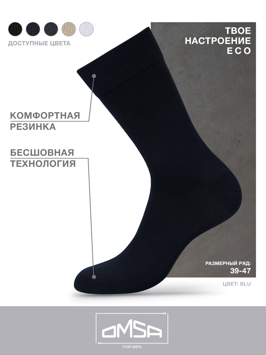 Носки мужские OMSA ECO 401, высокие, комплект 5 пар в упаковке "Крафт", Цвет Blu, Размер 45-47