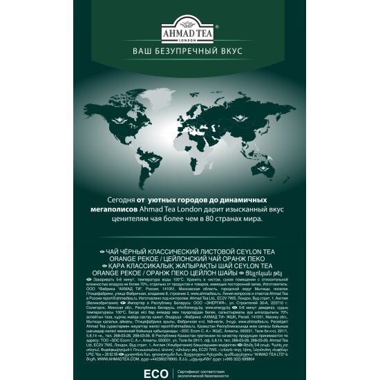 Чай Ahmad Ceylon Tea листовой черный Оранж Пеко, 200г 1289-012