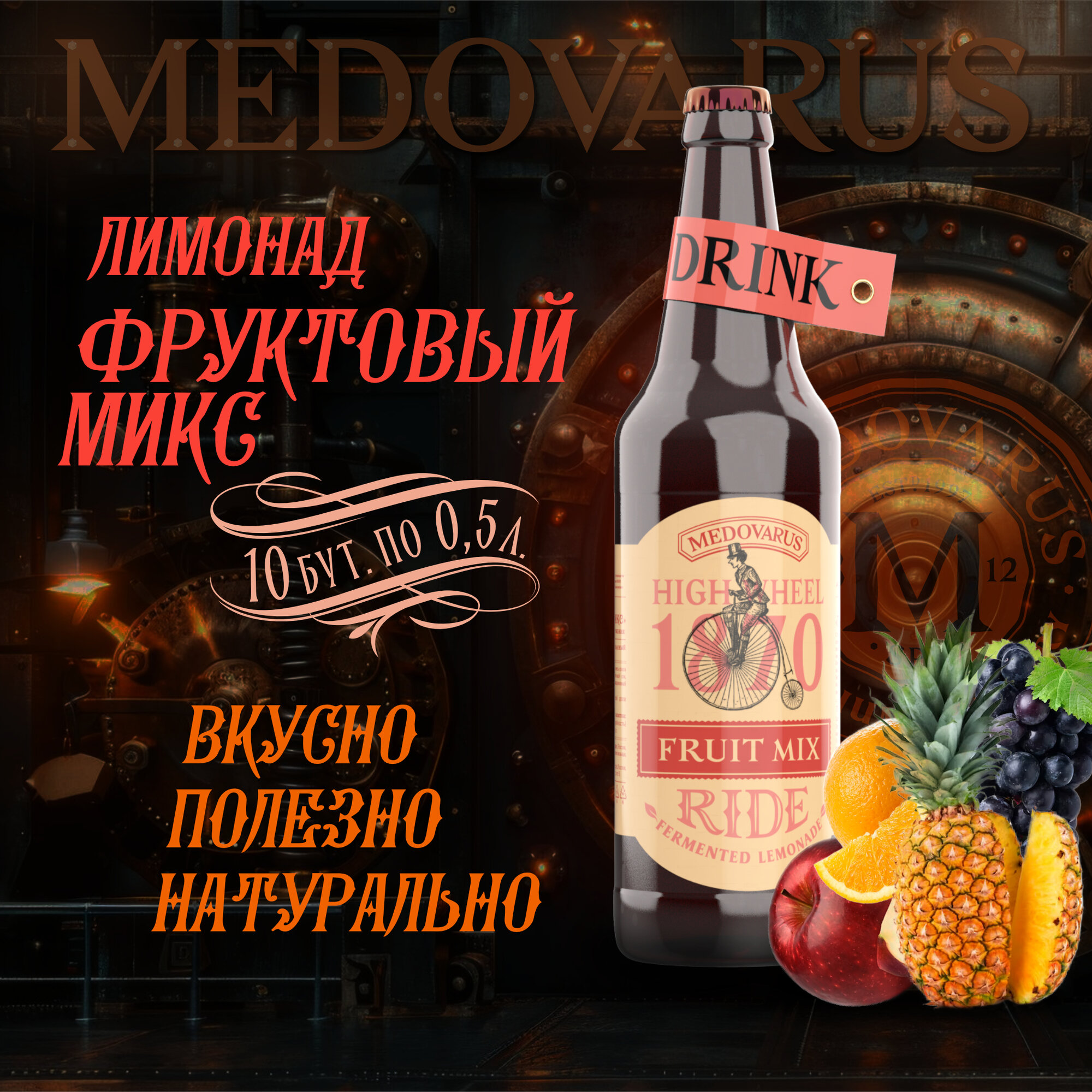 Лимонад Медоварус RIDE "Фруктовый микс"(Fruit mix), 10 бутылок в упаковке, 0.5 стекло