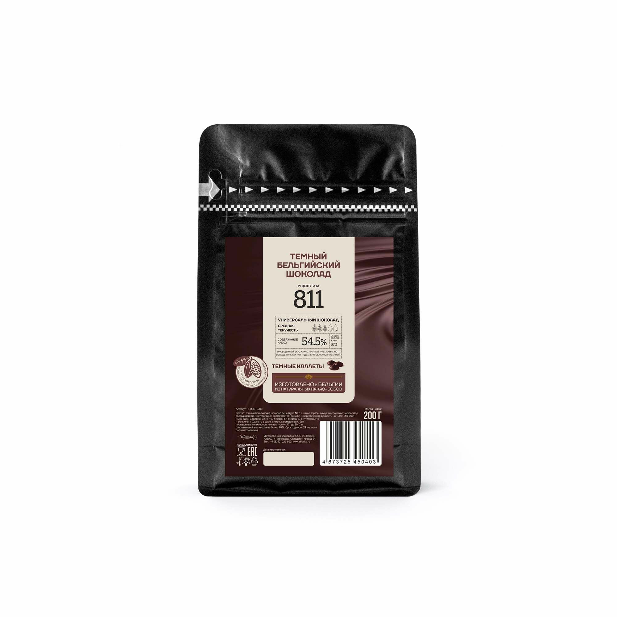 Купить Бельгийский темный шоколад №811 54,5% Callebaut 0,2 кг