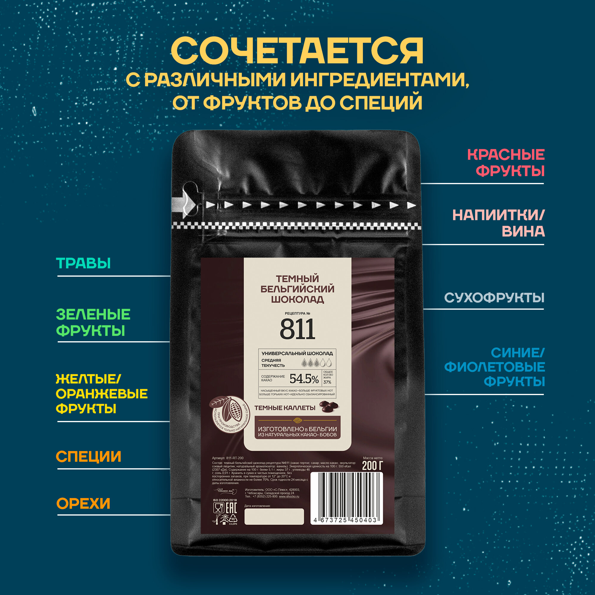 Шоколад в галетах Callebaut Темный № 811 (54,5%), уп 400г, арт 811-E0-D94