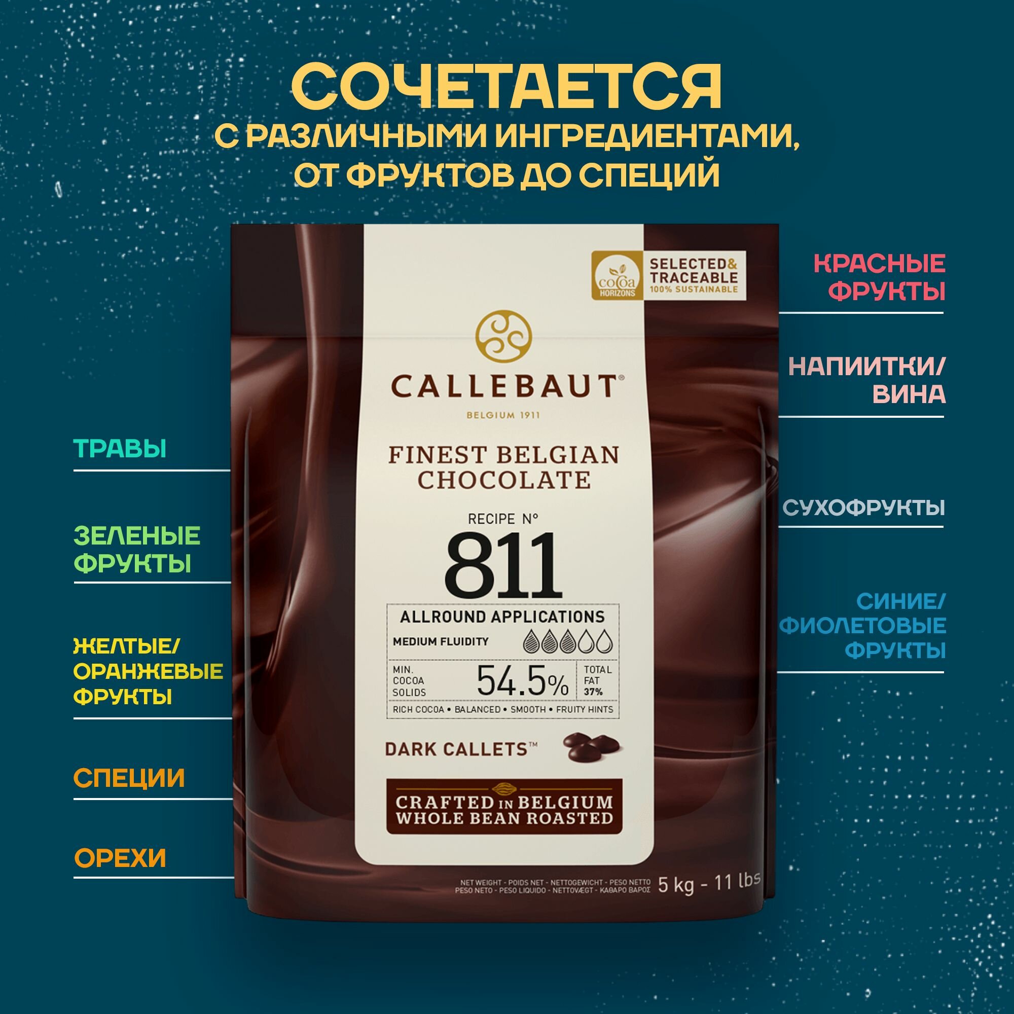 Шоколад Темный Callebaut №811 54,5% в каллетах, 2,5 кг, 811-RT-U71 Бельгия