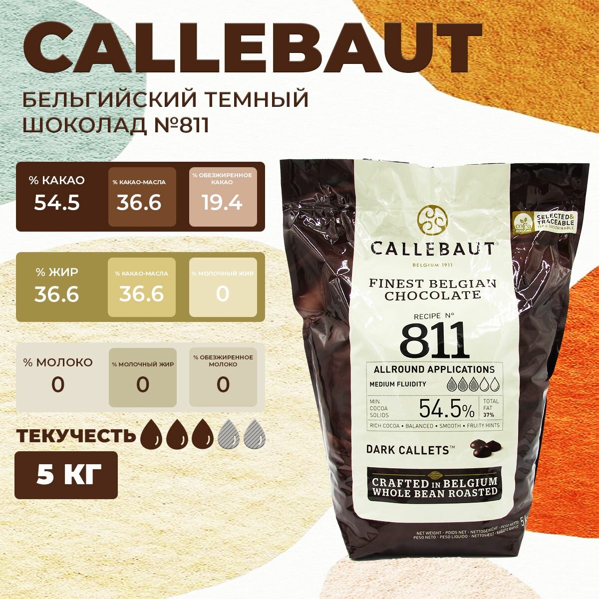 Купить Бельгийский темный шоколад №811 54,5% Callebaut 5 кг