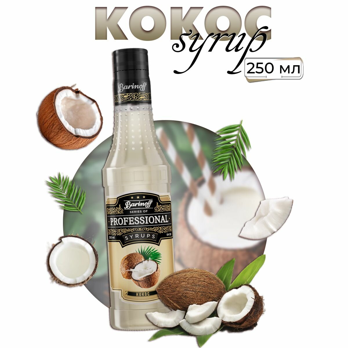 Купить Сироп Barinoff Кокос (для кофе, коктейлей, десертов, лимонада и мороженого), 250 мл/0,25л