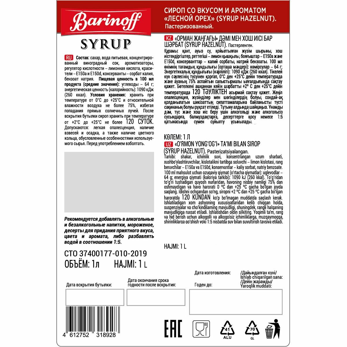 Сироп BARINOFF "Лесной орех", 1 л, стеклянная бутылка В комплекте: 1шт.