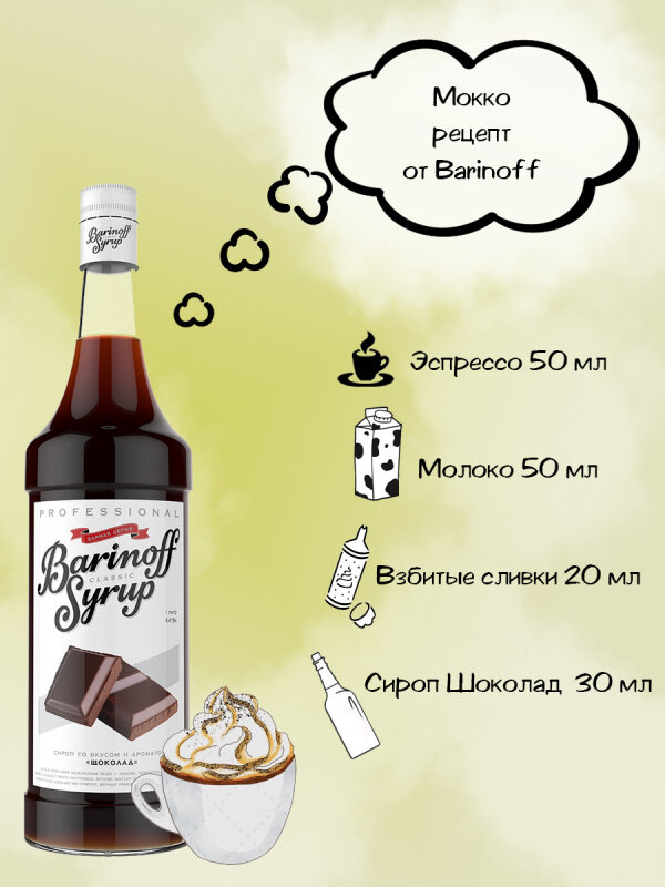 Сироп Barinoff Шоколад (для кофе, коктейлей, десертов, лимонада и мороженого), 1л