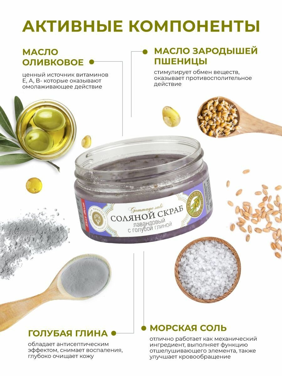 Соляной скраб лавандовый с голубой глиной, 300 г