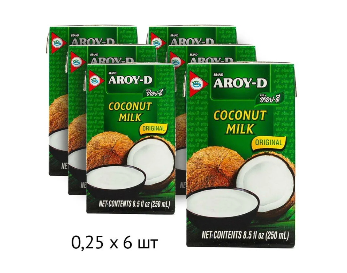 Кокосовое молоко "AROY-D" 250 мл, Tetra Pak (6 штук)