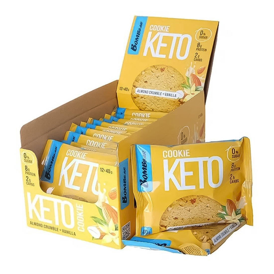 Купить Диетическое печенье Bombbar KETO Cookie, 12шт по 40 г,вкус: миндальный крамбл-ваниль