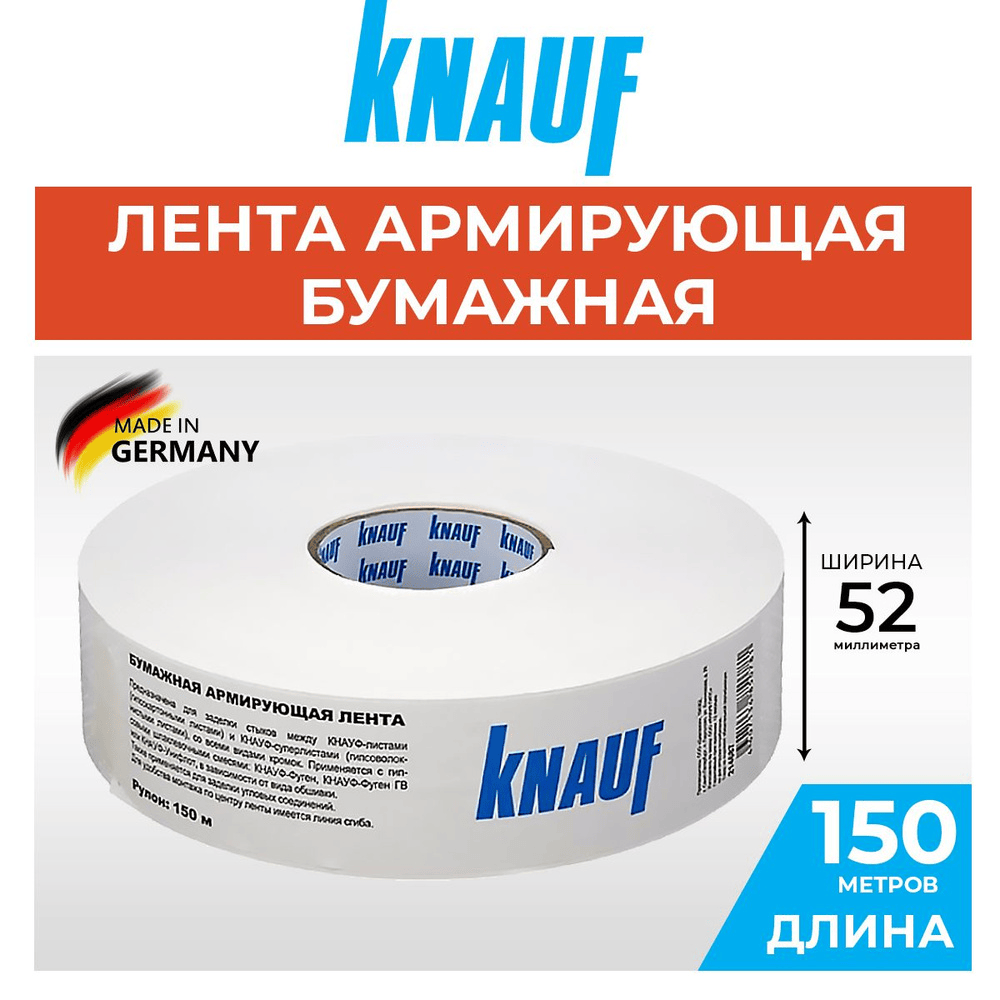 КНАУФ лента бумажная для швов ГКЛ (150м) / KNAUF лента углоформирующая бумажная для швов гипсокартона 52мм (150м)