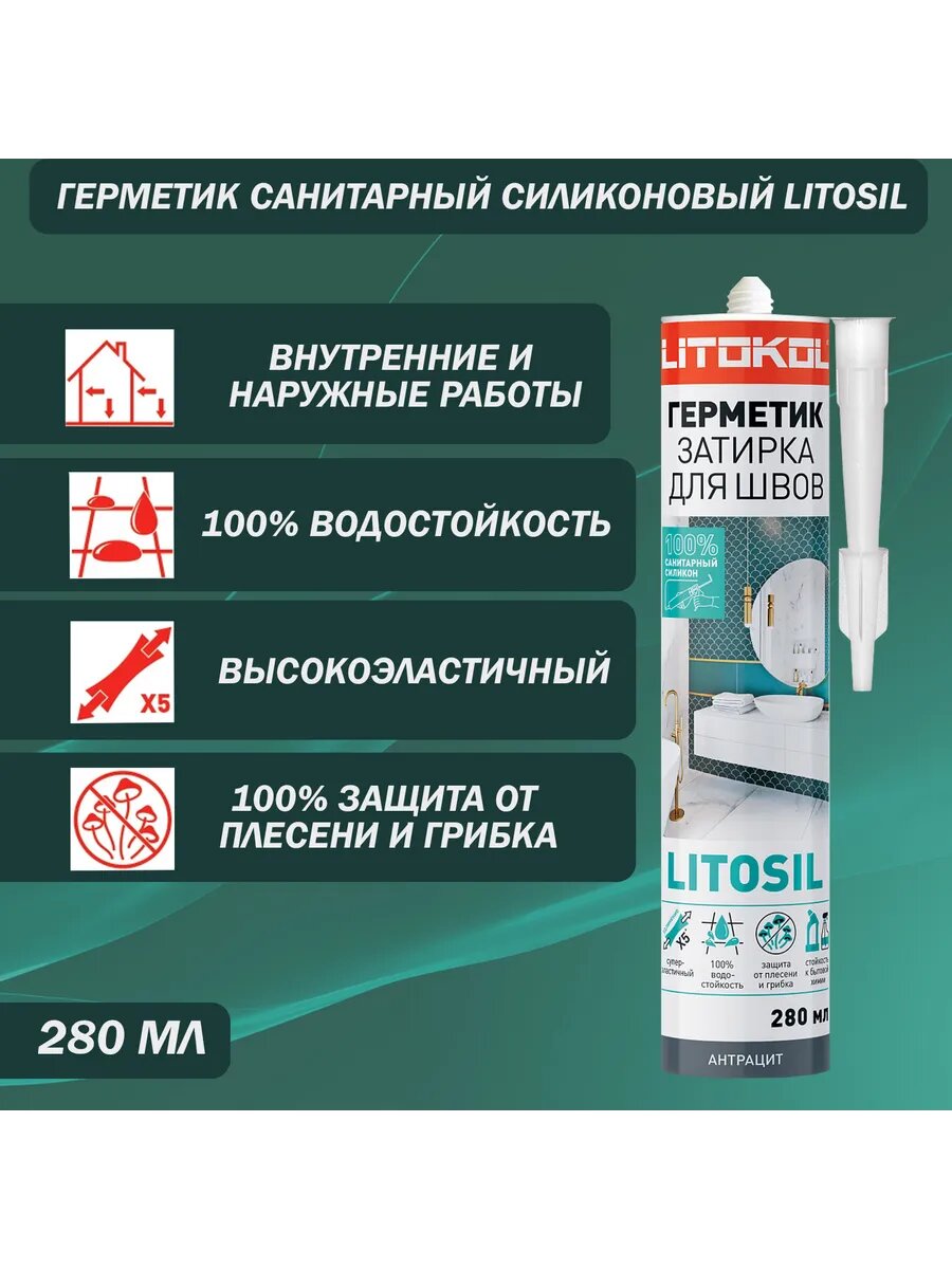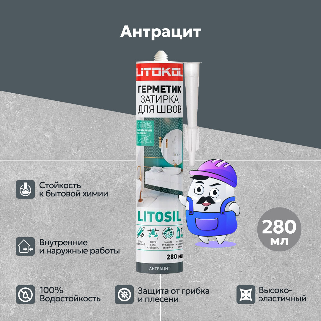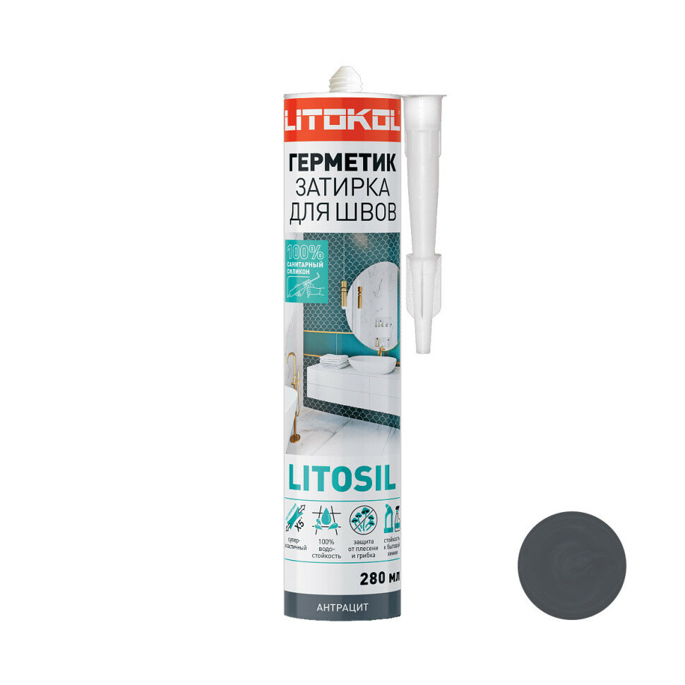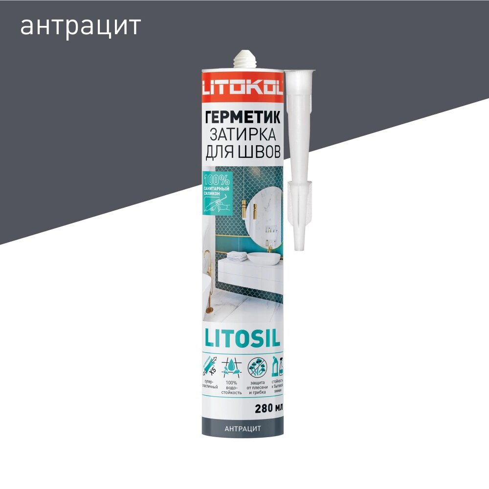 Купить Герметик-затирка санитарный силиконовый LITOKOL LITOSIL Антрацит 280 мл