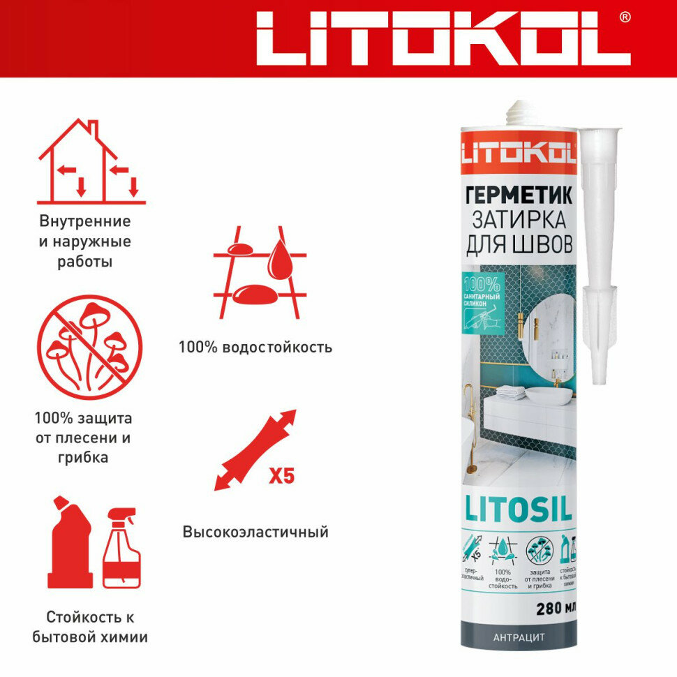 Ниже Вы можете прочитать отзывы на Герметик-затирка санитарный силиконовый LITOKOL LITOSIL Антрацит 280 мл, ознакомится с подробными характеристиками, посмотреть интересные обзоры и фотографии на Герметик-затирка санитарный силиконовый LITOKOL LITOSIL Антрацит 280 мл.